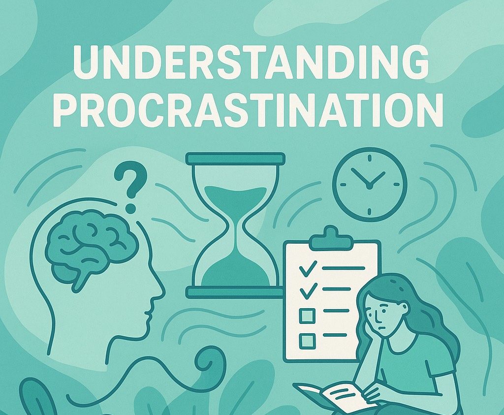 Procrastination is the act of putting things off, such as delaying tasks or decisions even when we know it might cause stress later. Most people experience it at some point, and it can show up in many ways: avoiding a project, putting off a conversation, or struggling to start something important.